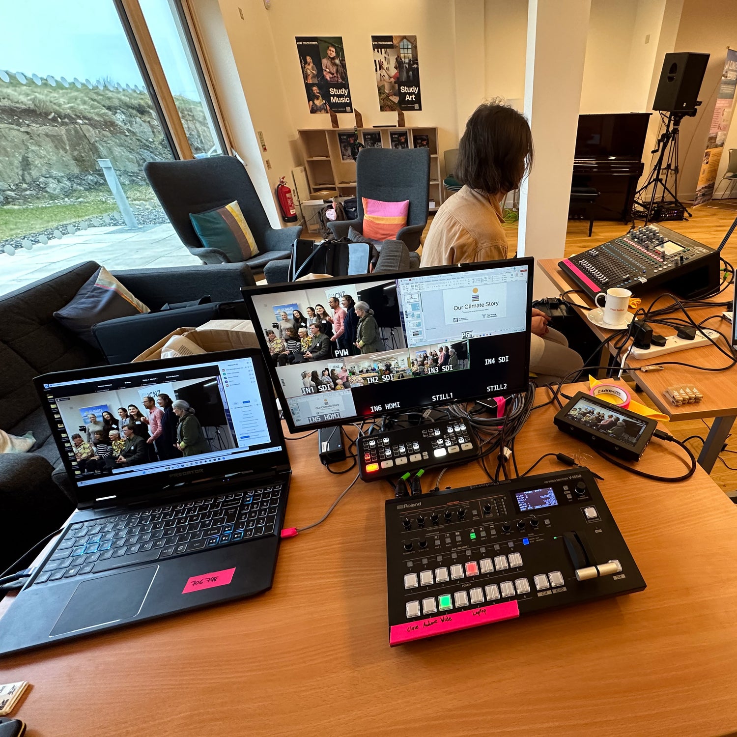 In 2021 we expanded our live streaming capability vastly, when we ran an audiovisual multi-camera live stream for HebCelt Festival's main programme, viewed by hundreds worldwide. Since then we have gone on to live stream events for the University of the Highlands and Islands, the Isle of Harris Distillery, and many more. Whatever your idea is for a live streamed event, we can take care of the whole process.